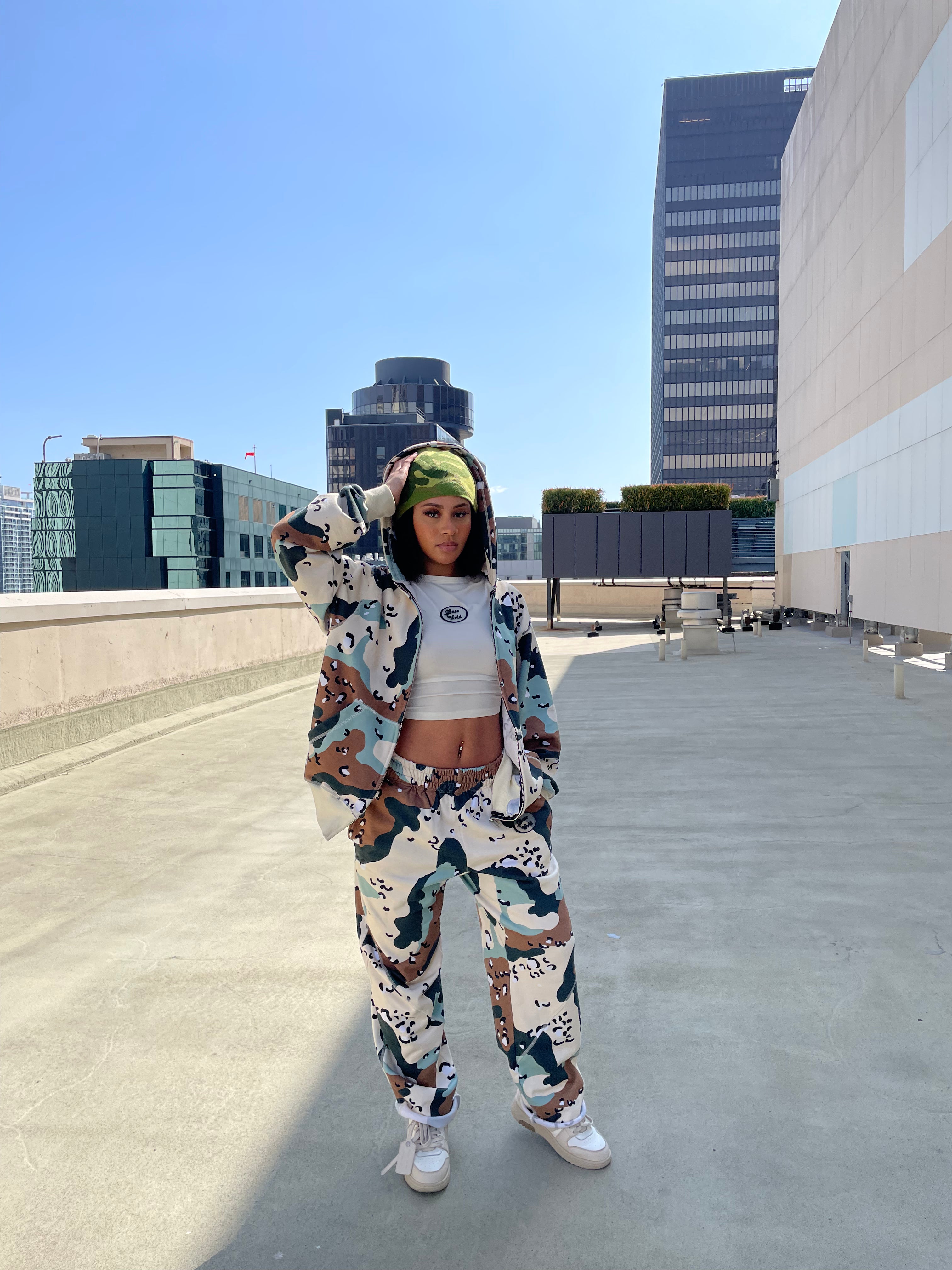 2 Tones Camo Zip Up Hoodie